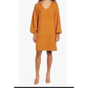 Rachel Parcell Wool Blend Balloon Sleeve Sweater Dress Size S Fall Pumpkin Spice