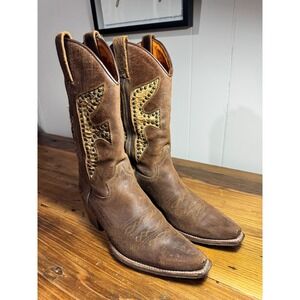 Frye Daisy Duke Western Boots Women's 9M Brown Leather Python Studded Vintage