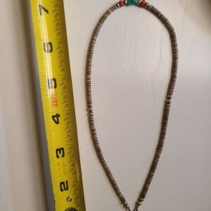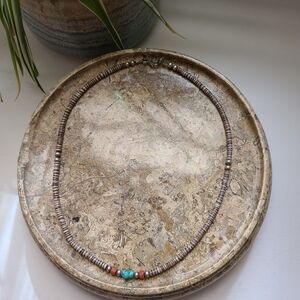 Turquoise Coral Heishi Puka Shell Navajo Native American Necklace