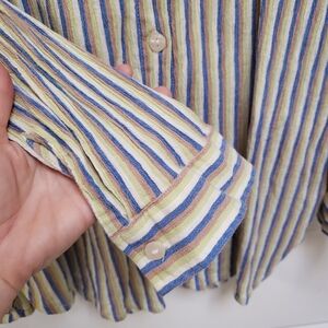 Cotton On Blue Green Tan White Striped Long Sleeve Button Up Tunic Shirt
