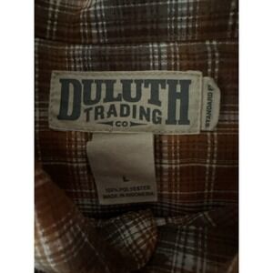 The Duluth Trading Co. Men's Large Brown Plaid Button Down Short Sleeve Shirt with Pockets is a stylish and versatile addition to any man's wardrobe. Made from polyester in a woven fabric type, this shirt offers a comfortable fit with a regular fit and collared neckline. The brown plaid pattern and button closure make it perfect for casual occasions, while the inclusion of pockets adds both functionality and style. Machine washable and made in Indonesia, this button-down shirt is a timeless and easy-to-care-for piece that embodies a classic and casual look.