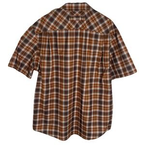 Duluth Trading Co Mens Large Brown Plaid Button Down Short Sleeve Shirt Pockets