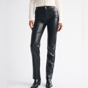 @lizdekofsky Hi! These are Franco Sarto’s ‘standard’ calf width which is usually 13-15” for the brand. I did a rough measurement and these are just under 15” for me. I also believe these are synthetic leather (but feels pretty real)