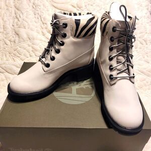 Timberland Booties Kinsley Waterproof White Nubuck Leather Zebra Lug Sole 7 New