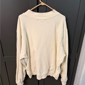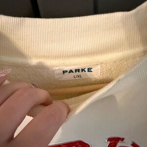 Stylish ivory sweater featuring bold red lettering. Perfect for a casual and trendy look.