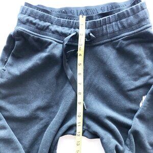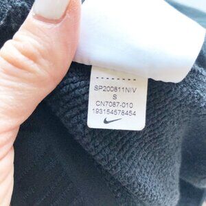 Nike Spodnie Air black sweatpants. Double waistband, drawstring waist, size small, cotton rayon polyester blend, one side of drawstring is twisted & missing cap-see photo. Smoke and pet free home.