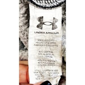 Under Armour Gray Fleece Boys Pullover Hoodie. Cotton Polyester. Size Youth XL. Some threads are missing from the top of the pocket as shown in picture. Measurements taken flat: