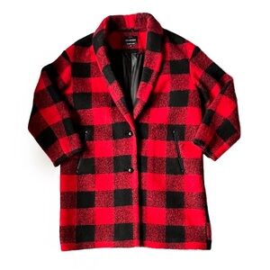 Lucky Brand Buffalo Check Plaid Oversized Wool Blend Coat, Red & Black, Sz - L