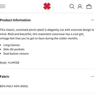 •Lucky Brand Buffalo Check/Plaid Oversized Coat