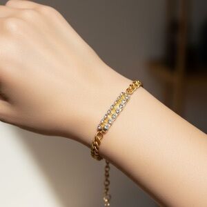 This elegant bracelet features a stunning combination of gold and silver tones, perfect for adding a touch of sophistication to any outfit.