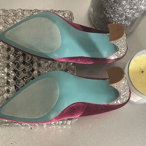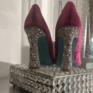 Betsey Johnson Fuchsia Velvet Pumps with Glittering Silver Rhinestone Heel