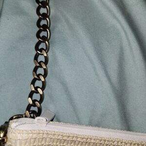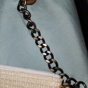 Cosmetic/Clutch turned into shoulder bag. Comes with Rivets, unbranded strap, and rustic/ vintage like chain