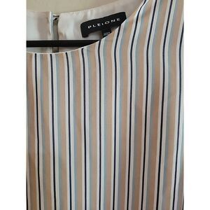 Pleione womens XS tank top shirt tan white blue stripped lined keyhole