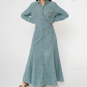 Stylish denim maxi dress perfect for casual outings. Features a classic blue hue for a timeless look.
