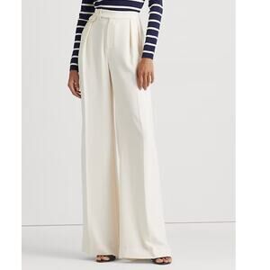 Ralph Lauren Mascarpone Cream Pleated Georgette Wide-Leg Trouser Petite Size 8P