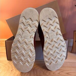 Worn several times, but still have a lot more adventures left in them! Some scuffing on the toe (see pics) and discoloration on the soles from adventuring. Super cool, I just don’t wear them enough to keep them! Dust bags & box included!