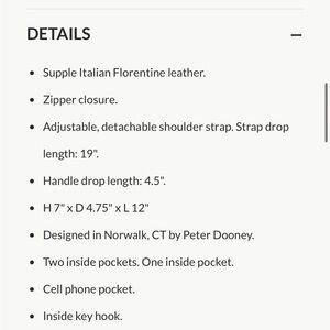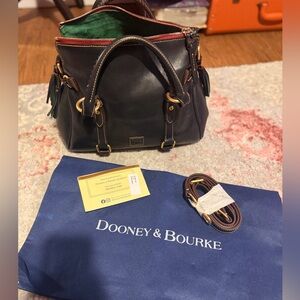 USED ONCE, in EXCELLENT condition. Please see photos of condition, from website with specifications to actual size on average model courtesy of Dooney & Bourke’s website. Happy Poshing!♥️