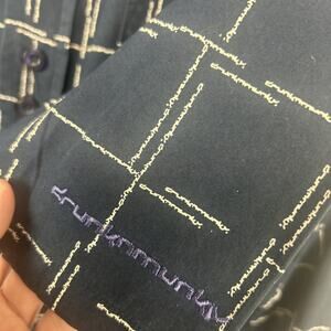 Drunknmunky Button Short Men's 2XL Short Sleeve Blue Plaid Shirt Logo Plaid