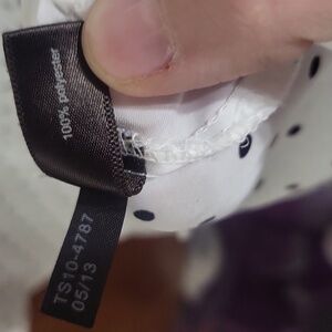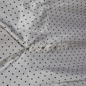 Has a satin type feel, shiny look. Three buttons and v neck top. Has 1 breast pocket.