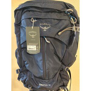 Discover the Osprey Stratos 34 Hiking Backpack, designed for comfort and style. This blue backpack is perfect for outdoor enthusiasts seeking functionality and durability, featuring the latest gorpcore fashion trend. New With Tags (NWT) for guaranteed quality.