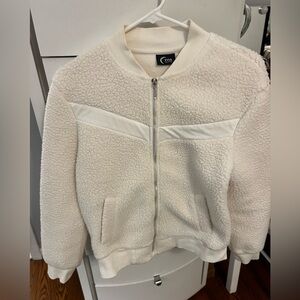 Cute bomber type jacket. Size XS. Ivory/white fleece like texture on the outside. See material tag for info
