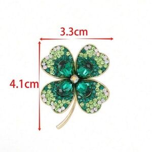 Add a touch of luck and elegance with this stunning green clover brooch. Perfect for any occasion.
