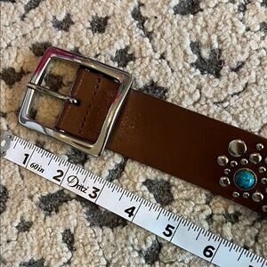 Cute leather belt with studs and turquoise like studs, genuine, leather, extra large
