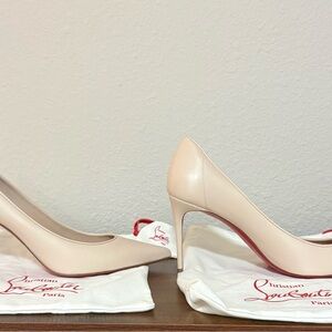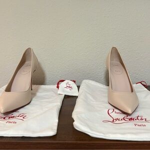 Christian Louboutin heels in nude with original shoe bags and heel replacements.