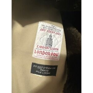 Keywords: London Fog coat, men's outerwear, trench coat, double breasted, fur collar, vintage style, classic menswear, winter coat, fall fashion, professional attire, warm jacket, outerwear of distinction