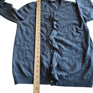Ann Taylor womens Sz M gray Ruffle cashmere cardigan sweater