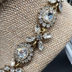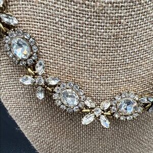 Turn heads with this stunning J.Crew statement bib necklace, inspired by Victorian elegance. Featuring clusters of clear faceted crystals (~3/4” each) arranged in an ornate, antique-style design, this piece blends romantic vintage charm with modern sophistication.