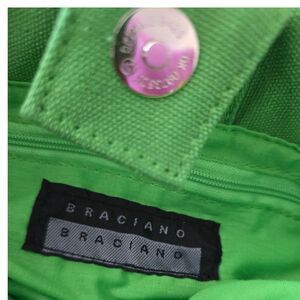 Women's Handbag with Bamboo Top Handles Flamingo Theme Green Pink White Purse, Satchel Handbag. Please look at pic 6. Minor stain, washable. EUC