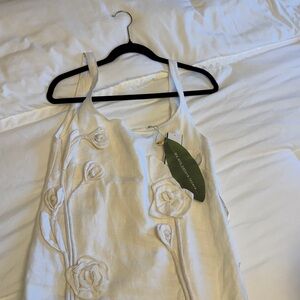 Brand new, never worn. Perfect for a bride to be or for an amazing vacation look. An undone bouquet of tonal blooms accents a simple summery dress cut from pure, lightweight linen.