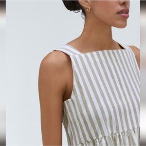 Everlane Seersucker Beige and White Striped Midi Dress