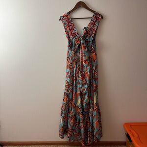 NWT!! Farm Rio x Anthropologie Size L Square-Neck Midi Dress