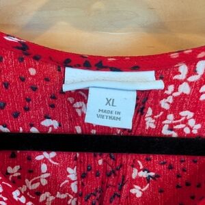 Chic red blouse with white floral pattern. Lightweight and stylish. Perfect for casual outings.