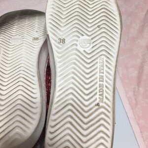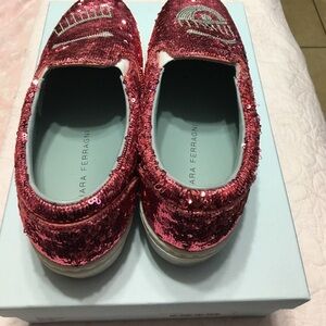 LIKE NEW!!! Only worn twice slip on sneakers! SPECIAL EDITION embellished with fuchsia and silver sequins forming the famous eye shape that's always been a symbol of her shoe line. ADORABLE!!! They just fit me a bit too big 😒