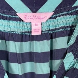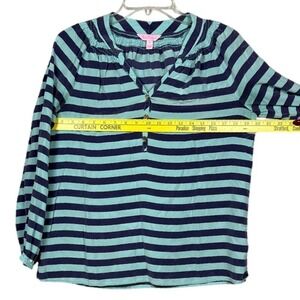 Lilly Pulitzer Size Medium Women's Elsa Blue Striped Silk Quarter Sleeve Blouse
