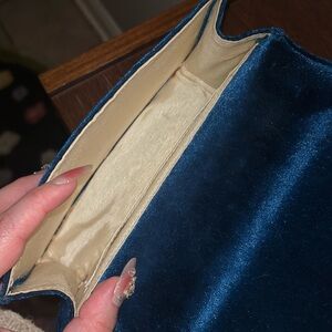 Rich deep teal velvet Lily Pulitzer crossbody bag. Features a luxurious gold chain strap. Perfect for versatile wear. I believe I wore this bag 1 MAYBE 2 times. This color paired with the velvet texture is chefs kiss.