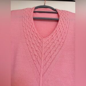 Stay cozy and stylish with this elegant wool pink V-neck sweater. Perfect for any occasion.The sweater is brand new, never worn but no tag Pit to Pit is 19in, Length is 24,5in Sleeves are 26in Made in Spain