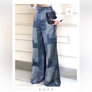 Wide Leg Patchwork Pattern Jeans