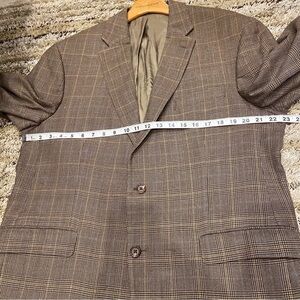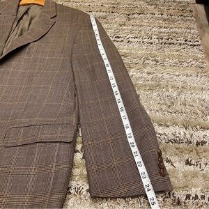 Lauren Ralph Lauren 44R Blazer Wool Silk Brown Glen Plaid Jacket