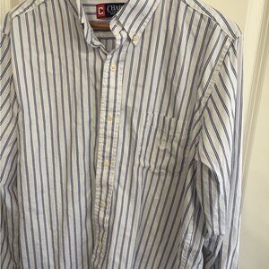 Classic Chaps shirt with blue stripes. Button-down style. Ideal for casual wear.