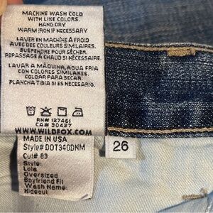 These Wildfox Couture Lola Boyfriend Jeans from Revolve, in size 26, offer an oversized fit with a relaxed, laid-back style. The "Hideout" wash gives them a vintage, distressed look, making them perfect for casual, everyday wear.