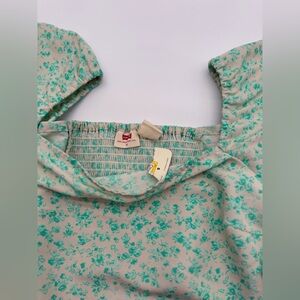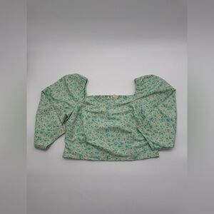 Levi's Women's Yvie Puff 3/4 Sleeve Cropped Blouse - Electric Green Floral NWT