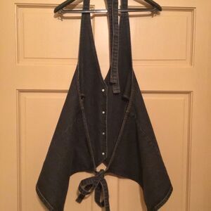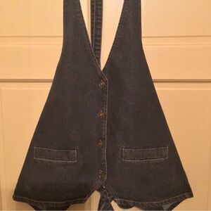 Stylish black denim halter vest with button closure. Perfect for casual wear.