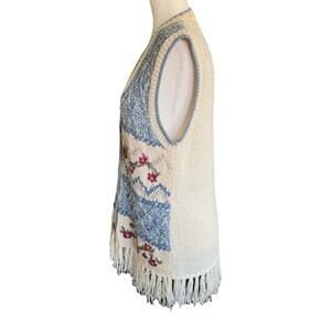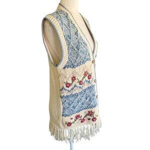Margules Womens Vest Sweater Cardigan M Blue Knit Boho Fringes Grandmacore