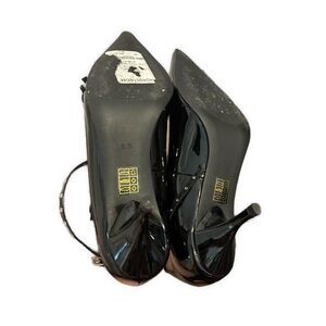 JEFFREY CAMPBELL Resilient Pointed Toe Pump In Black Patent Strappy Heels 8.5