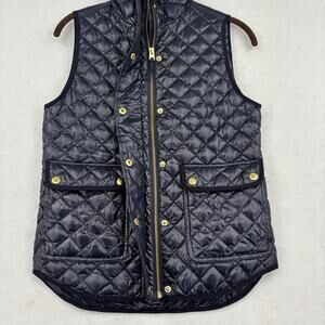 J Crew Vest Field Quilted Puffer Womens Size XXS Navy Blue Shiny Down Filled