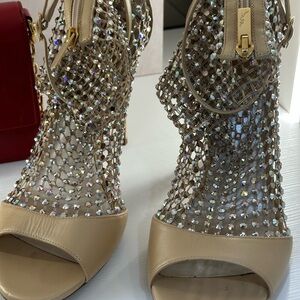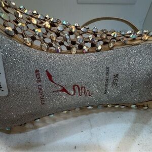 Stunning heels with intricate mesh design. Features sparkling silver accents. Perfect for elegant occasions.